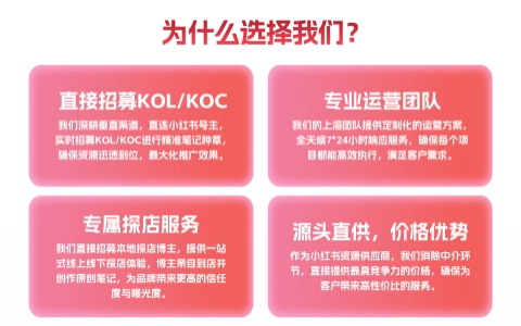 通过整体策略定制、KOL种草推广、企业号代运营、效果广告投放、笔记搜索占位和数据分析优化等手段,帮助品牌实现精准营销与高效增长。